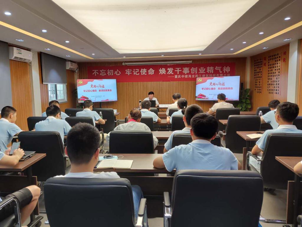 为庆祝中国共产党成立99周年,进一步弘扬党的优良传统,切实发挥党员领导干部示范带动作用,全面加强党建领域的校企深度合作。7月4日上午,学院思政部教师车延年应邀至学院校企深度合作企业——重庆中建海龙两江建筑科技有限公司讲授了一堂专题党课。