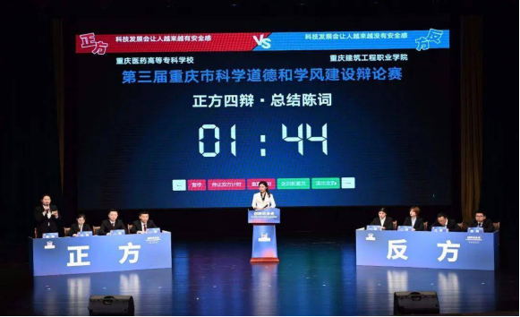 2023年4月19日,由市科协、市教委、市科技局、市社科联共同举办的第三届重庆市科学道德和学风建设辩论赛决赛在重庆理工大学举行,koko体育由教师江涛,学生吴玉凤、余锦易、杨岱组成的辩论队经过前期激烈的小组赛、复赛、半决赛,过关斩将进入决赛,摘得本次辩论赛高职高专组亚军,江涛老师获得“全场十佳辩手”称号,koko体育荣获“优秀组织单位”称号。