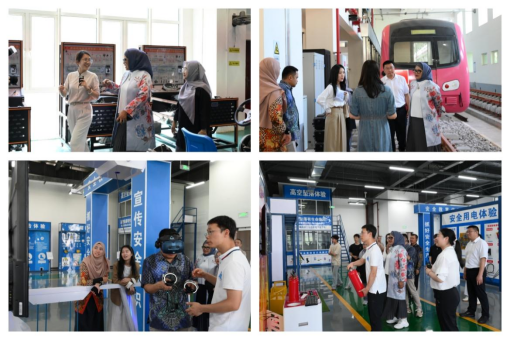 随后,嘉宾一行参观了学校电梯产业实训基地、新能源汽车实训基地、轨道交通综合基地、建筑产业现代化实训基地,亲身体验部分实训项目,对学校实训条件高度赞赏,充分肯定学校产教融合的办学成果。