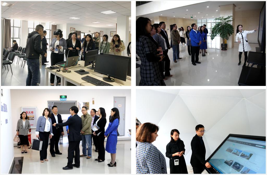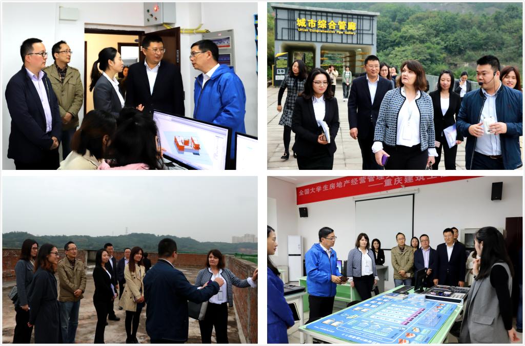 随后,代表团参观了实验实训中心、智能实验室管理系统、重庆市智慧工地远程监控系统、BIM技术中心、VR实训基地和工程体验馆等,学院教师代表用流利的英语为来宾们介绍了学院的课堂教学、技能实训设施。Cathy Glover教授对我院的智慧实验室管理和智慧工地教学系统惊叹不已,并且对VR实训基地十分感兴趣,称赞学院教学信息化、数字化达到国内先进水平。代表们一致认为学院市政实训基地、EP-R实训室,工程体验馆实训场地等设施先进、我院教师队伍的国际化水平高、教育教学设施和实验实训条件完备,认为学院专业特色突出、综合实力显著,赞赏学院未来在国际化的道路上一定大有建树。