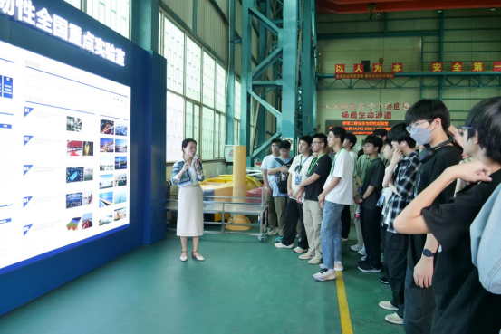 在桥梁工程结构动力学国家重点实验室,师生们近距离观摩了世界上首个轨道移动式双台阵地震模拟振动台试验系统。