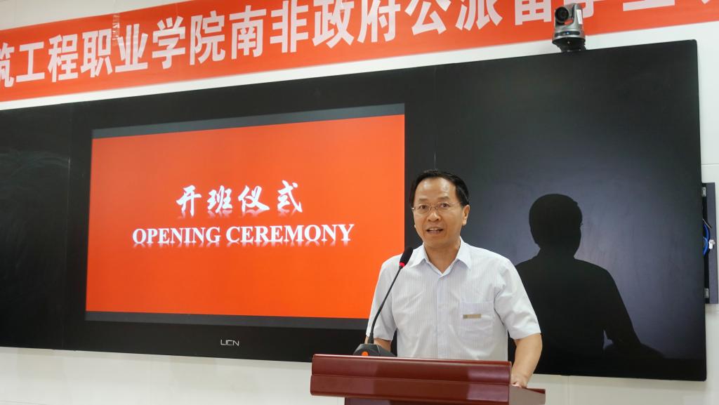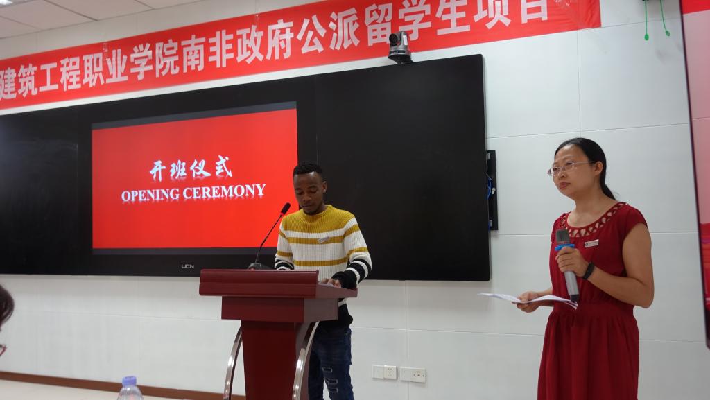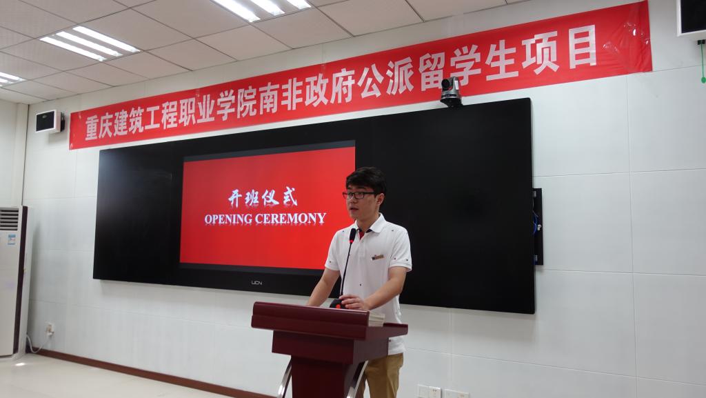 留学生学业导师、土木工程系青年教师杨博文代表教师讲话,他从自身的留学经历出发,鼓励留学生们积极面对学习、生活中可能遇到的困难,不怕苦不怕累,学好专业知识,提升技能技艺,将来回到家乡为南非的发展添砖添瓦。
