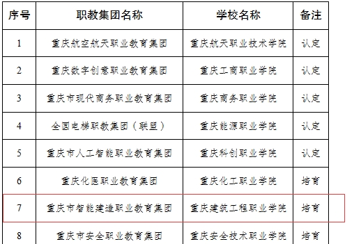 集团动态 当前位置: 首页 > 集团动态 > 正文 重庆市智能建造职业教育集团被确定为市级示范性职教集团培育建设单位 来源/编辑: 发布时间:2020年06月27日 14:12 浏览:次 2020年6月26日,我院牵头成立的重庆市智能建造职业教育集团被重庆市教育委员会确定为重庆市第二批高等职业教育示范性职业教育集团培育建设单位。 入选重庆市第二批高等职业教育示范性职业教育集团培育名单,是重庆市智能建造职业教育集团的一次重大发展机遇。作为集团的牵头单位,我院将积极探索新时代下智能建造职业教育的新路径,带领集团成员进一步深化产教融合、加强校企合作,促进教育链和产业链有机融合,全面提升服务区域产业发展、服务现代职业教育体系建设的能力,充分发挥职业教育集团化办学的示范引领作用。 上一条:院长吴国雄带队走访重庆市海绵城市建设工程技术研究中心 下一条:院长吴国雄教授带队走访重庆市勘测院