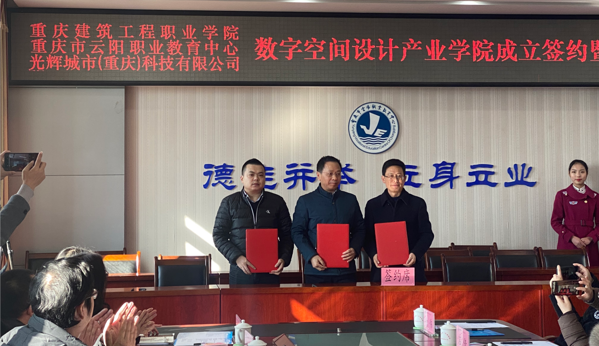 1月19日,koko体育官网协同合作企业光辉城市(重庆)科技有限公司,在云阳职教中心成立数字空间设计产业学院,开启校企三方合作新篇章。