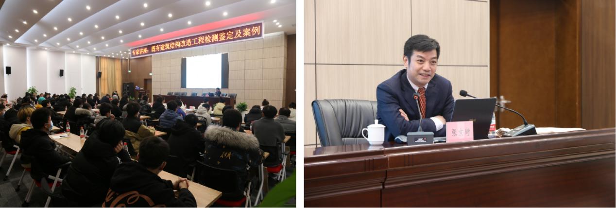 随后,与会领导和嘉宾参观了koko体育建筑产业现代化实训基地,学校师生代表听取了重庆建科院副总经理、总工程师张京街带来的《既有建筑结构改造工程检测鉴定及案例》精彩讲座。