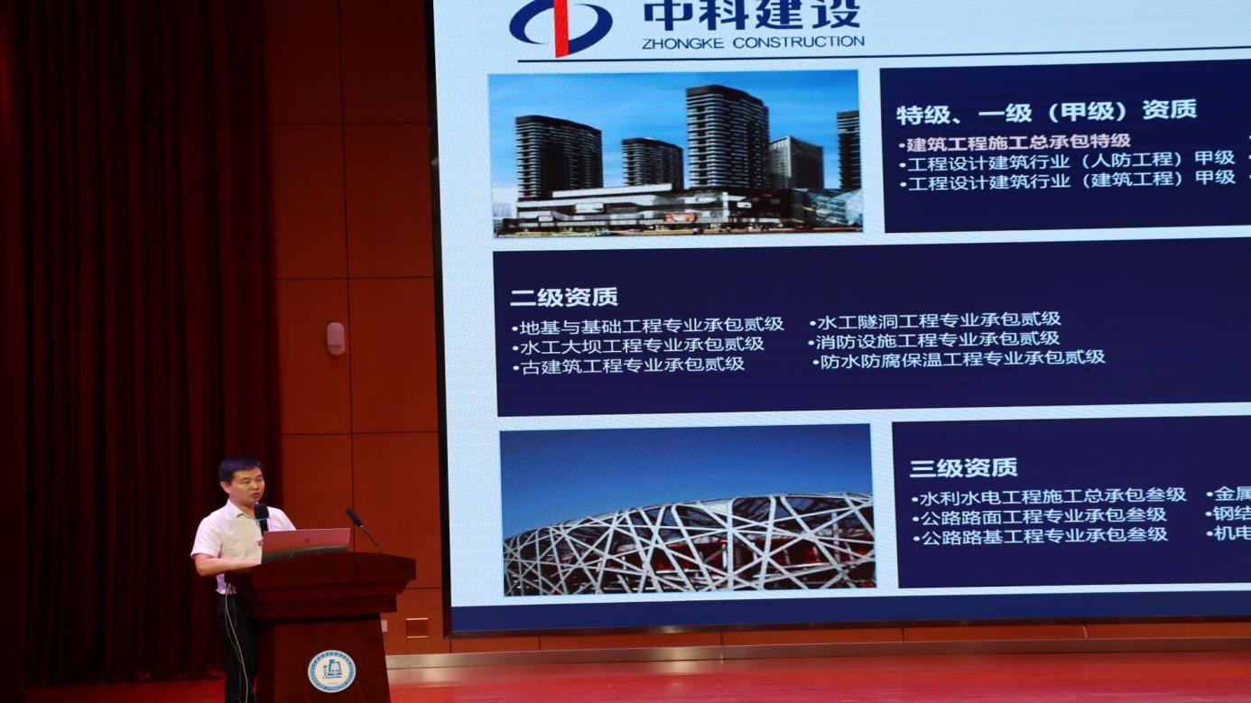 9月8日下午,koko体育官网 重庆中科建设(集团)有限公司2021年度“中科精英班”、“中科道桥班”(以下简称“中科订单班”)选拔活动在活动中心“多功能厅”隆重举行。重庆中科建设(集团)有限公司副总裁石本竹、工程技术部总监欧武丙、人力资源部总监曹洋铭、人力资源部培训负责人何自容,koko体育官网副校长刘幼昕,交通与市政工程学院党总支书记杨晓东、院长黄春蕾,智能建造学院院长张银会、党总支副书记张晓霞、副院长熊启东出席活动,企业相关同志及来自交通与市政工程学院、智能建造学院400余名师生代表参加本次活动。