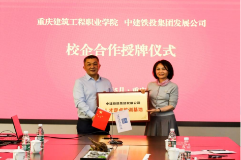 中建铁投集团发展公司董事长万超介绍了公司基本概况及发展历程,表达了开展校企合作的意愿,深入探讨了在人才培养、资源共享、学生就业等方面的合作路径。公司人力资源部、工程部、科技部等部门负责人分别介绍了岗位需求和具体合作事项。随后,校长吴国雄、董事长万超代表校企双方签署了校企合作协议并相互授牌。