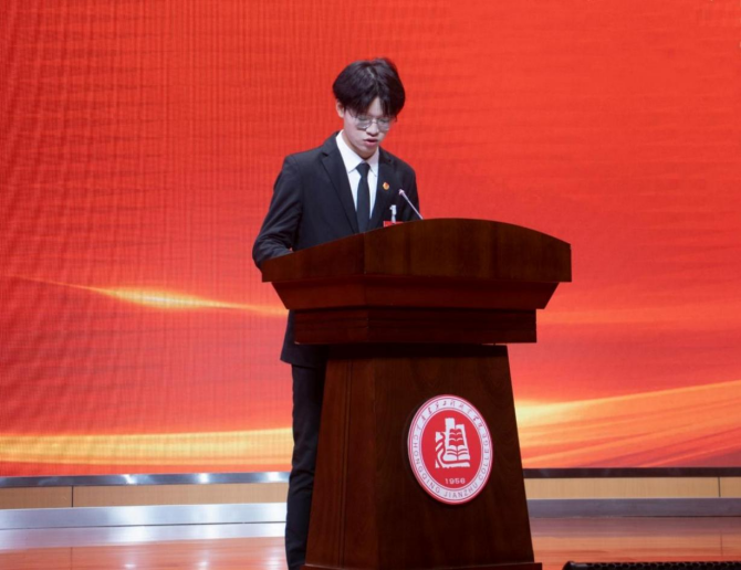 第十三届学生会主席团成员涂茂林同学向大会作了题为《坚定理想信念不忘服务初心牢记担当使命让新时代青年在青春的赛道上书写别样的青春风采》工作报告。