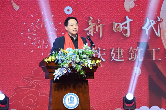 党委书记吴国雄致辞。吴书记代表学校向全体教职员工、全体同学致以最诚挚的问候及美好的祝福,并带领大家回顾了2024年全体建工职院人的共同奋斗历程,勉励全体师生员工在2025的新征程上,秉承“厚德博学、求实创新”的校训精神继续奋进。