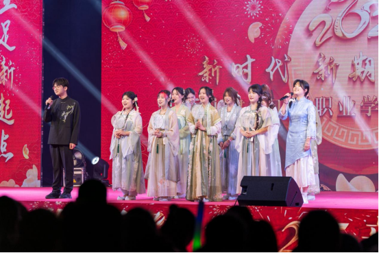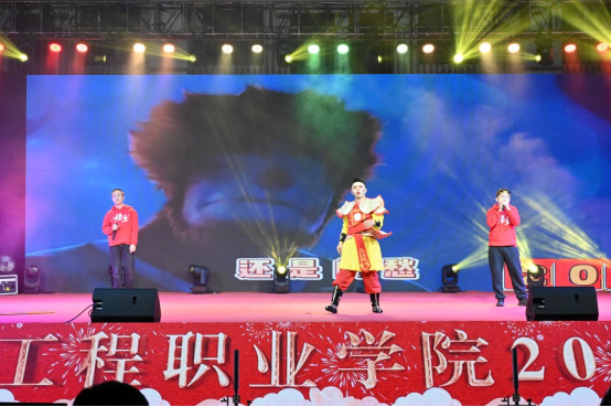 在第一篇章“寻梦传承•新使命的担当”中,智能制造学院带来了舞蹈《龙把子》,让同学们深度感受了龙文化的魅力;党委学生工作部带来了红色情景表演《穿越时空的对话》,为同学们演绎了一份跨越时空的坚定信仰;智能制造学院带来了歌伴舞《悟空》,传递了在命运枷锁中无畏抗争的精神;智慧城市设计学院带来了舞蹈《望春山》,在山水间勾勒出春天的画卷。