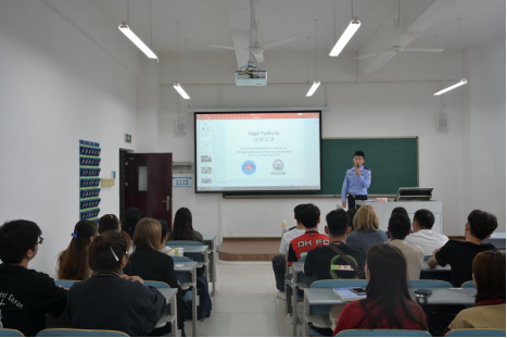 南岸区公安局出入境管理支队警官用英文依次介绍了《中华人民共和国宪法》《中华人民共和国治安管理处罚法》《中华人民共和国出境入境管理法》中的重要内容,围绕外国人入境出境、停留居留、非法就业、禁毒法律法规、交通安全、网络安全等方面进行了详细地讲解。