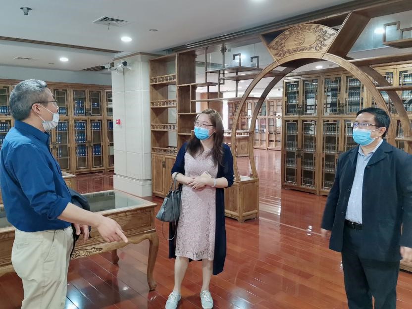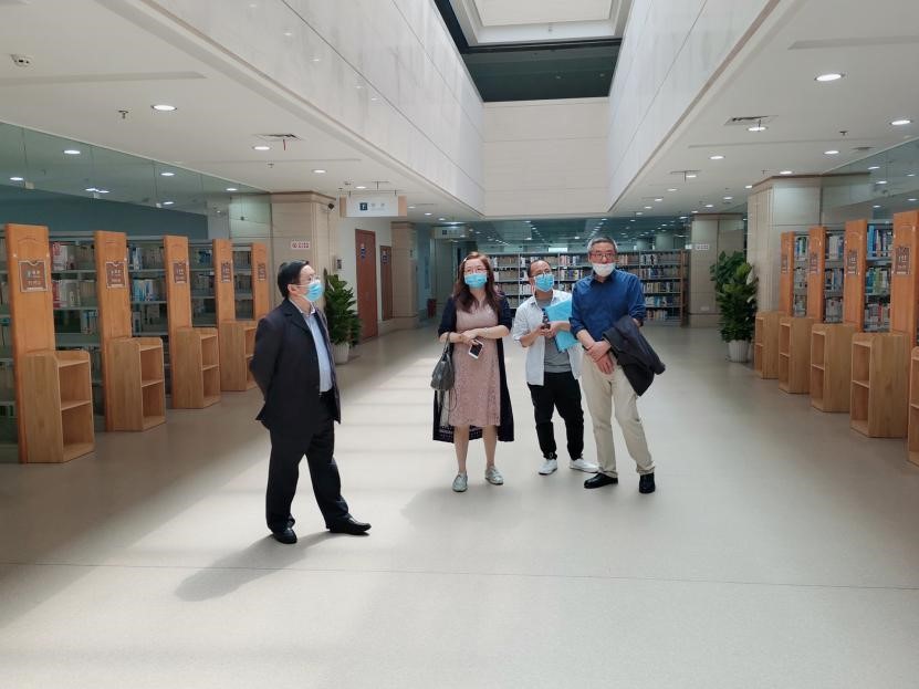 在馆长办公室,双方还就图书馆新馆建设、内部环境合理规划、智慧化图书馆、图书流通、人员管理等进行了深入探讨和交流。黄馆长、戴馆长还结合我院实际提出了许多有益建议,为我院正在筹建的新图书馆提供了丰富经验和宝贵借鉴。