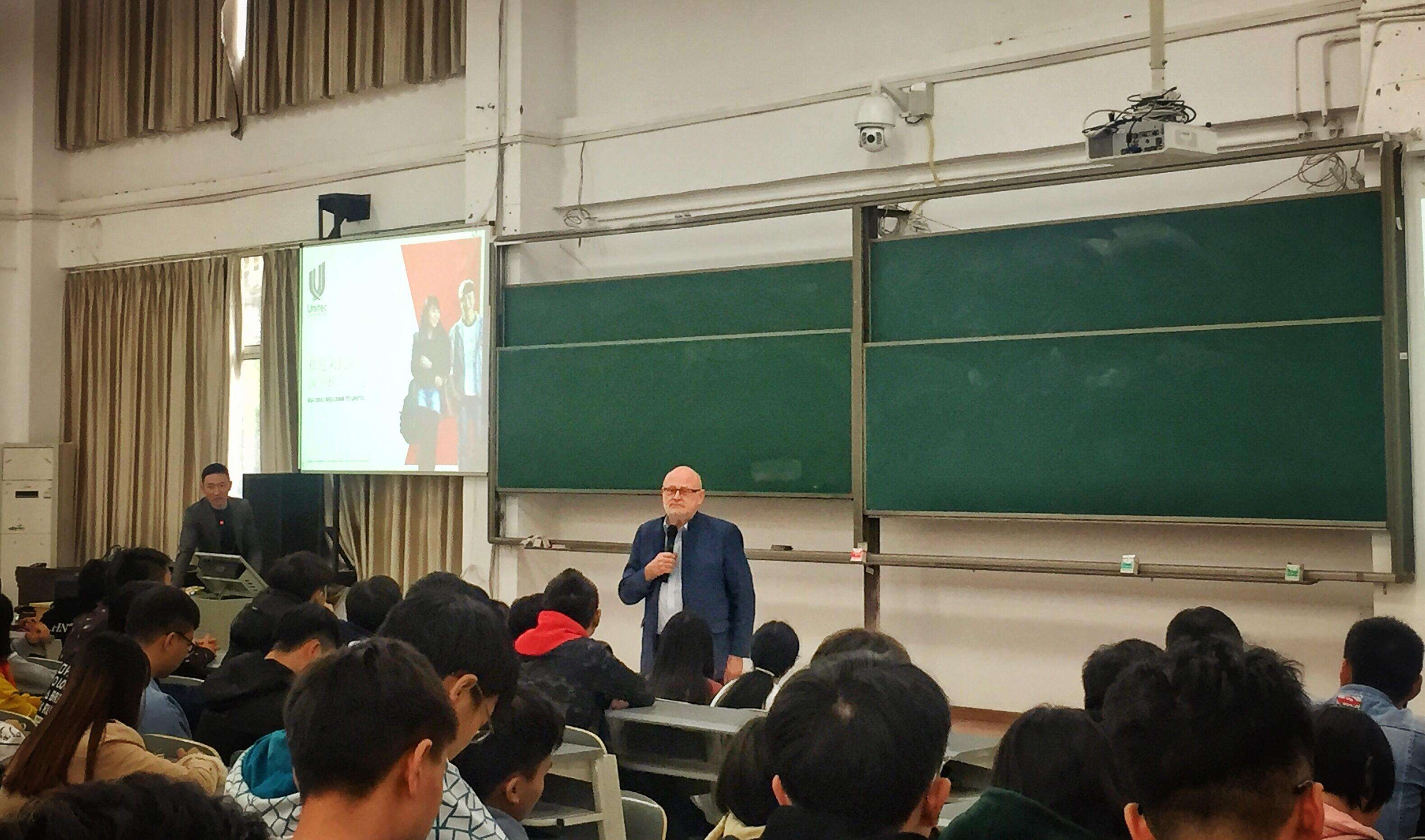 会后,David教授在4-209教室与建筑与艺术系和建设管理与房地产系的学生们进行了亲密的交流,新西兰国立理工学院国际部经理罗亮介绍了新西兰国立理工学院的优势和特色,重点介绍了学分互认项目。学生们可以在我院完成3年的专科学习后,转学分至新西兰国立理工学院,完成新西兰国家英语证书课程后,有机会进入新西兰国立理工学院本科学习1.5~2年后获得该学院学士学位。
