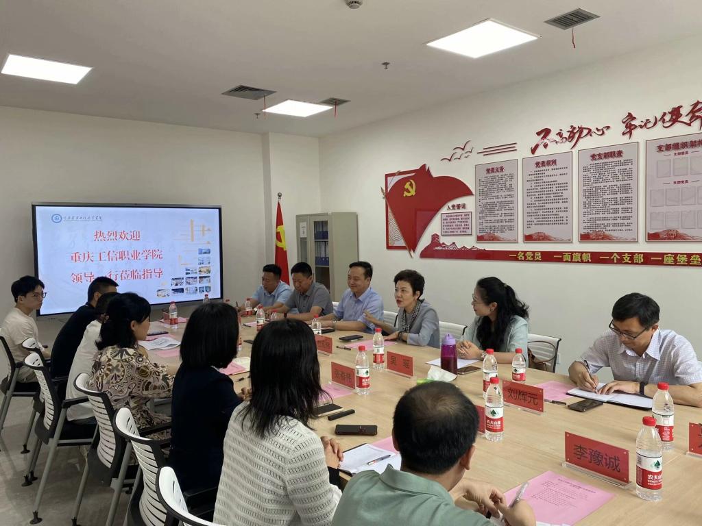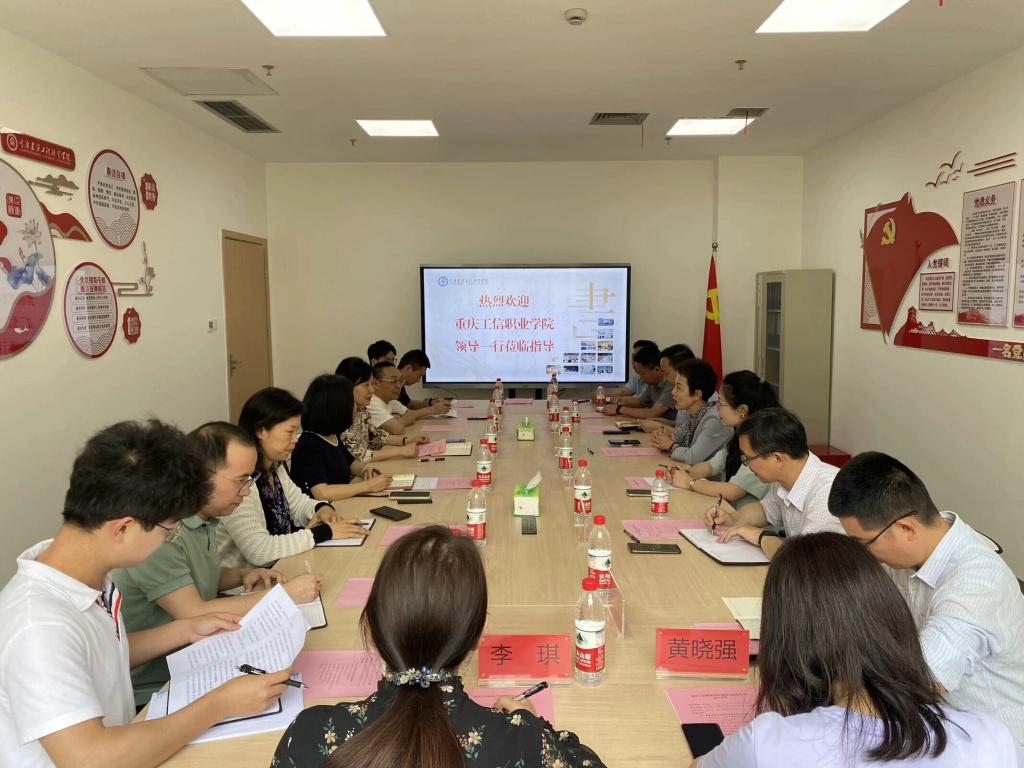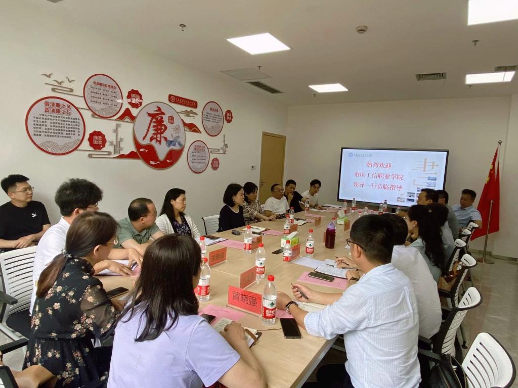 5月14日下午,重庆工信职业学院来koko体育调研考察。调研组一行包括重庆工信职业学院党委副书记、校长杜宏伟,党委副书记吴瑶,党委委员、副校长柴彬堂,以及学校现代教育技术中心、教务处、学工部、后勤基建处、马克思主义学院相关负责人。koko体育副校长陈依民,基建后勤处、图书馆相关职能部门负责人接待了调研组一行。