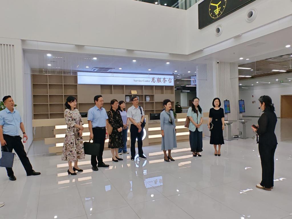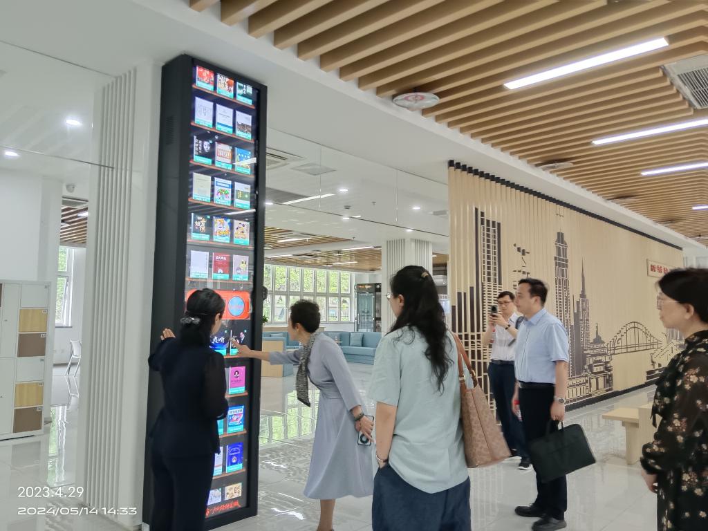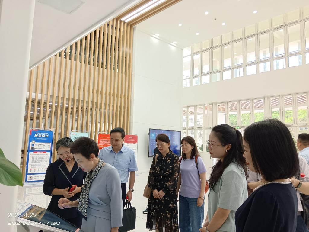 调研组一行首先在图书馆刘丽老师的讲解带领下,实地参观了koko体育图书馆各个功能区域,深入了解了图书馆的空间布局和家具配置,体验了馆内智慧设备和阅读环境。