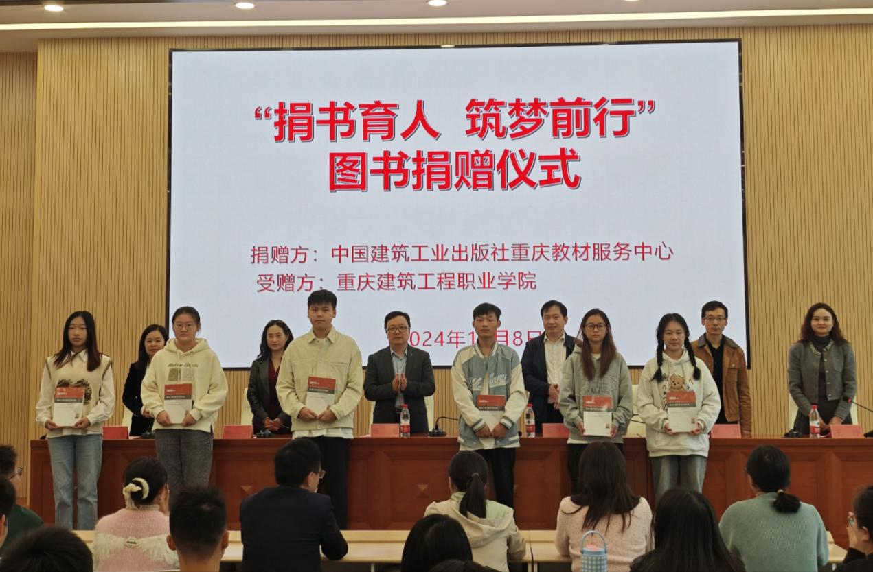 11月8日,由中国建筑工业出版社重庆教材服务中心和建管学院共同主办的图书捐赠仪式在学校思政厅隆重举行。此次活动以“捐书育人,筑梦前行”为主题,中国建筑工业出版社重庆教材服务中心向建管学院捐赠500余本造价工程师培训考试用书。中国建筑工业出版社重庆教材服务中心主任、重庆市渝中区出版物协会会长王书旺,副校长杨旗出席仪式,继续教育学院、建设管理学院相关负责人参加捐赠仪式。