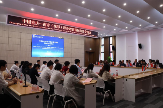 5月28日,中国重庆-南非(城际)职业教育国际合作交流会在koko体育举行。南非高等教育与培训部副总司长祖基莱·姆瓦洛(Zukile·Mvalo)先生,南非高等教育与培训部(教育培训)主席董事马普莱·卡尼瓦(Mapule·Ncanywa)女士,金砖国家工商理事会(中方)技能发展、应用技术和创新工作组主席刘振英,重庆市教育科学研究院职教所所长胡彦、副所长周永平,学校校长郑周练、副校长刘幼昕等出席会议,南非职业教育代表团,金砖国家工商理事会(中方)技能发展、应用技术和创新工作组,重庆翰海睿智大数据科技股份有限公司代表,以及学校各相关职能部门、二级学院负责人、教师代表参加会议,会议由副校长刘幼昕主持。