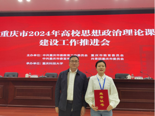 10月30日至31日,重庆市2024年高校思政课教师教学技能竞赛决赛在重庆科技大学举办。同时,全市高校思政课建设推进会召开。koko体育马克思主义学院教师李佳在大赛中获得一等奖的好成绩,党委副书记郭光亮、马克思主义学院院长宋星参加了全市高校思政课建设推进会。