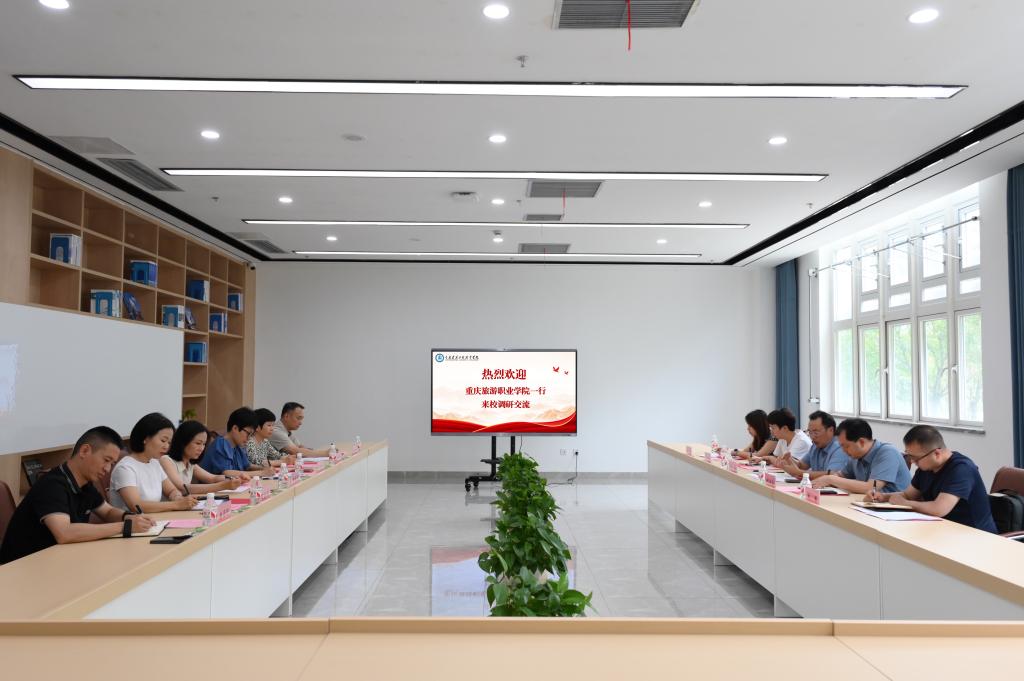 6月17日,重庆旅游职业学院党委副书记郭君一行来校调研交流。学校党委委员、副校长陈依民参加,科研与发展规划处、基建后勤处、交通运输学院、实验实训中心、图书馆等部门负责人陪同调研。座谈会在图书馆一楼创客空间召开。
