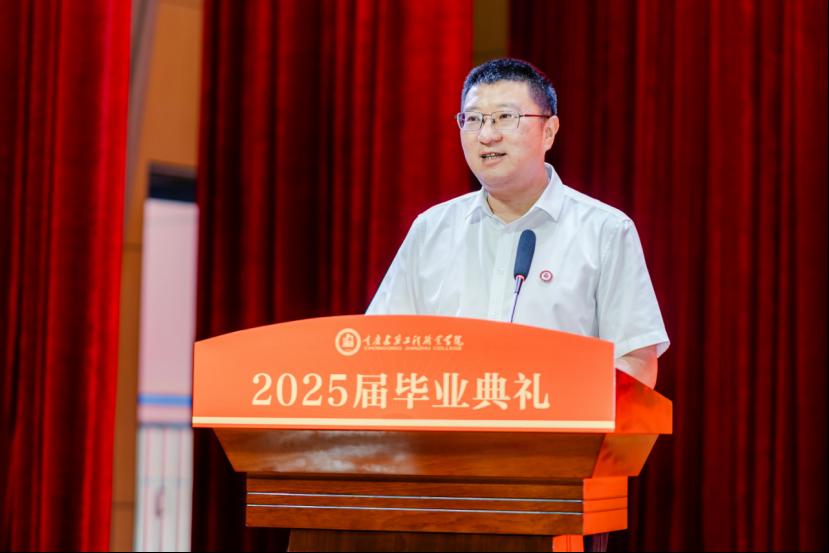 党委副书记、校长郑周练教授以《匠筑山河志 青春新征程》深情寄语毕业生。希望同学们记住在建工职院的青春岁月,珍藏拼搏的足迹与成长的硕果;记住母校的历史年轮,传承深厚的文化底蕴;记住母校的殷殷期待,紧握接力棒,勇当开拓者,在时代的浪潮砥砺前行,在民族复兴的伟大征程中跑出新一代建工学子的加速度。