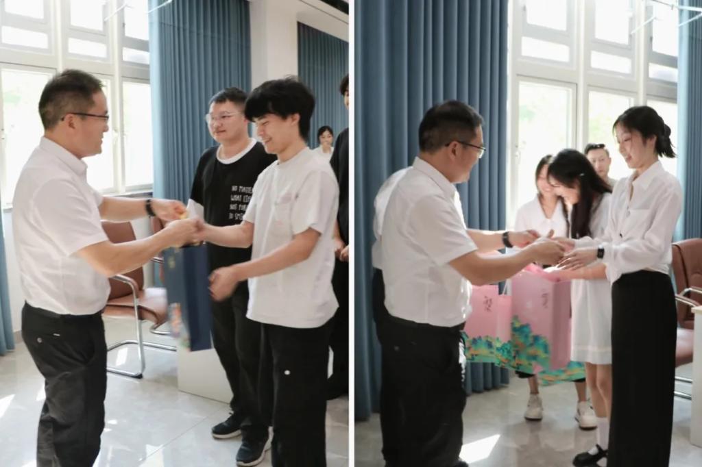 座谈会尾声,学校为每位毕业生代表赠送了镌刻校训的纪念品,寄托着母校对学子的殷切期望和美好祝福。本次座谈会不仅为2025届毕业生的大学生活画上温暖句点,更通过搭建师生对话平台,为学校高质量发展汇聚了宝贵智慧。