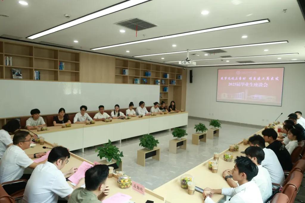 6月27日下午,学校在图书馆同心苑举行2025届毕业生座谈会。党委副书记郭光亮,党委学生工作部、教务处负责人,后勤处综合科科长和20余名毕业生代表欢聚一堂,共话成长,共谋未来。