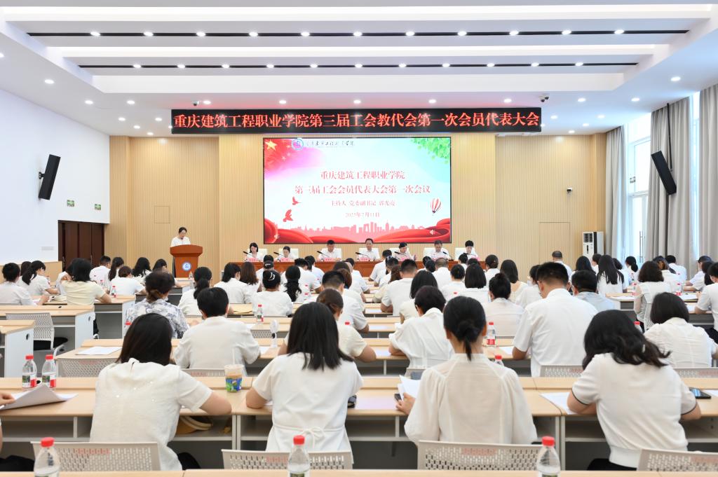 本次大会分两阶段进行。第一阶段召开学校第三届工会会员代表大会第一次会议。重庆市交通建设工会主席胡显易代表上级工会向大会的召开表达衷心祝贺,充分肯定学校第二届工会在服务职工群众,推进民主管理方面取得的突出成绩,要求新一届工会要自觉接受党的领导,大力弘扬劳模精神、劳动精神、工匠精神,用心用情为教职工服好务。