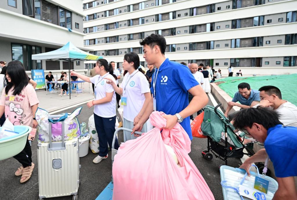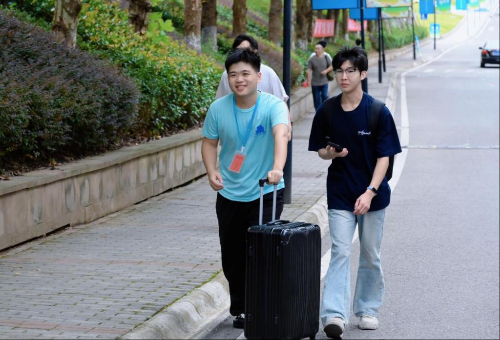 在各个学院的迎新点,师生们与志愿者们早早就位,以饱满热情提供“一站式”服务,从行李搬运到手续办理,从校园讲解到问题解答,让温暖与便捷贯穿入学全程。