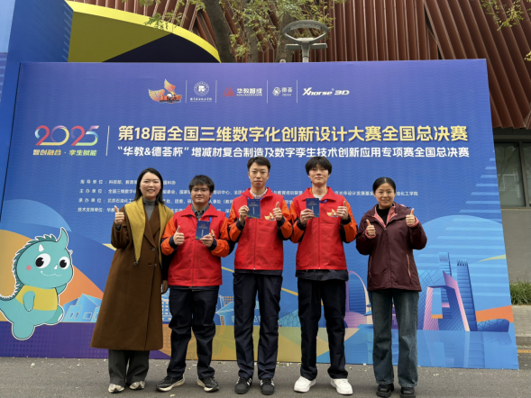 2025年11月15日,第十八届全国三维数字化创新设计大赛“华教&德荟杯”增减材复合制造及数字孪生技术创新应用专项赛全国总决赛在北京石油化工学院圆满落幕。学校智能制造学院由陈佳佳、郭晶老师指导,学生谷福生、龚洪平、陈华组成的参赛团队,经过与全国顶尖队伍的激烈角逐,最终凭借其优秀的创新设计作品与扎实的技术实践能力,荣获全国总决赛二等奖,充分展现了学校在智能制造领域人才培养的显著成果。
