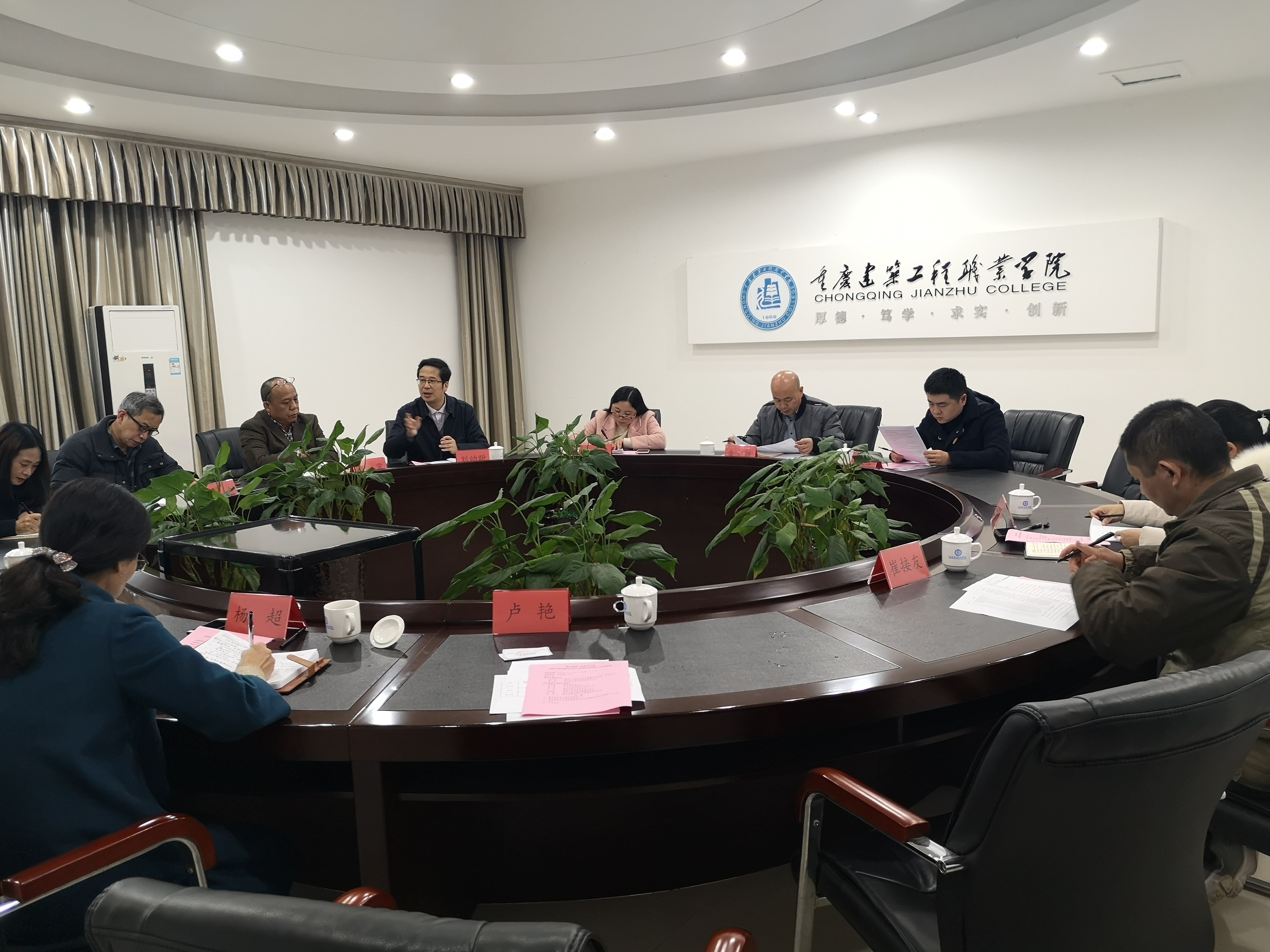 11月26日下午,受重庆市教委委托,重庆工业职业技术学院教务处处长黄文胜一行到我院进行高职扩招后教学改革与管理实地调研工作。调研会议在厚德楼313会议室进行。我院副院长刘幼昕、教务处处长张春丽、招生就业处处长黄霁、土木工程系党总支书记杨超、建设管理与房地产系系主任林洁、建筑与艺术系系主任卫东等相关人员出席了会议。