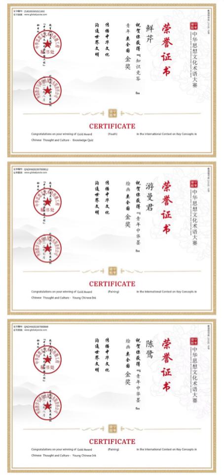 部分获奖证书