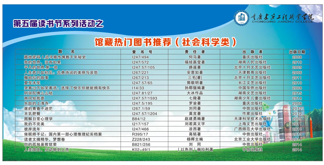 阅读,是喜欢地读,读得喜欢和读一切你喜欢的;悦美,则是愿你读到美,欣赏美,感悟美。为了大力宣传“4.23国际读书日”,倡导全院师生爱读书、读好书,我院图书馆于4月23日至4月27日开展主题为“阅读悦美 助力优质校建设”的第五届校园读书节活动。