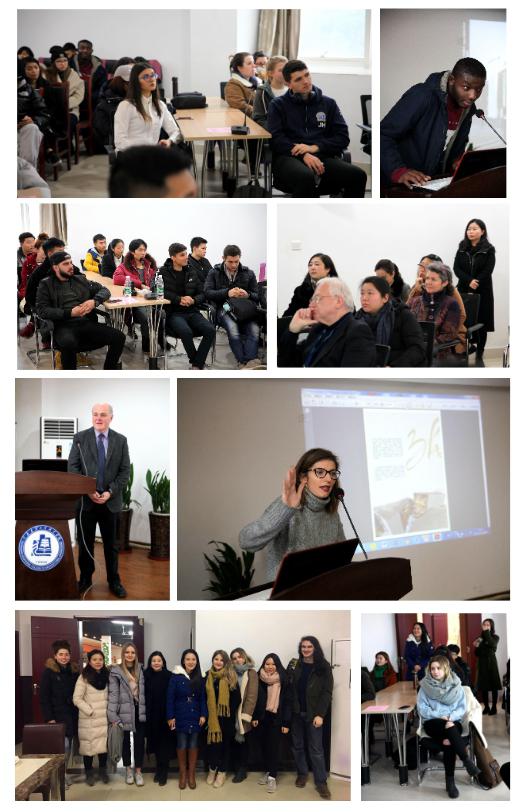 学院发展规划处处长苟寒梅出席会议并全英文致辞,表达了学院领导及建艺系师生对英方热情的欢迎,苟处热情洋溢的欢迎演说词及地道的英文发音赢得了在场师生的掌声。哈德斯菲尔德大学的Adrian Pitts教授亦对学院包容开放,热情友好的接待致谢。