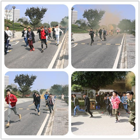 下午13:00分,各教学楼消防警报响起,浓烟四处飘散,在疏散引导员的指挥下,学院师生按照既定的疏散路线,紧张而有序的到达指定疏散集结点集合。
