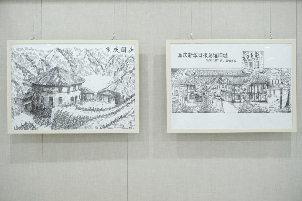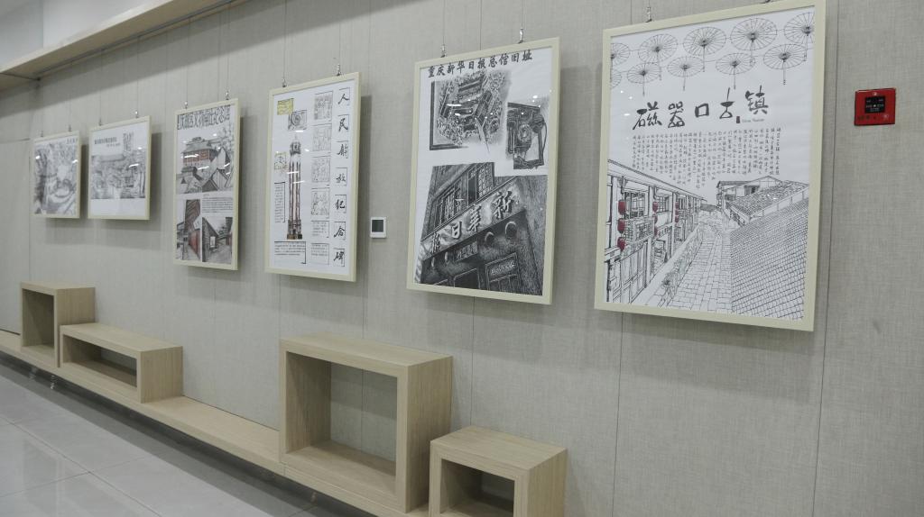 “赓续百年芳华,践行育人使命”——学校设计学院和实训中心师生手绘作品在图书馆展出