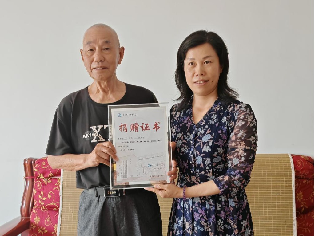 图书馆副馆长田红艳为刘老师颁发捐赠证书