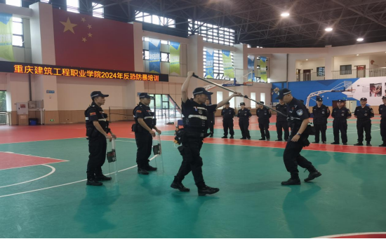 随后,教官根据参训人员岗位职责因岗施教,对安保队员和教职员工分别进行专项培训。教官围绕校园可能出现的暴恐袭击突发情况,对安保人员讲解了专业的防暴制敌战术,重点是盾牌、防暴棍、钢叉等防暴装备的配合使用,并模拟场景进行技术动作分解示范。在教官的指导下,保安队员进行分组演练,模拟暴恐袭击现场,明确人员配合,进一步掌握了防暴器械使用方法、技巧,提高了突发情况的应急处置能力。