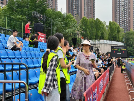 烈日下,他们是秩序的“守护者”。在入场检票处,志愿者们面带微笑,耐心引导观众有序入场、核验票务;场地周边,他们坚守岗位,为观赛人员提供清晰指引,用细致入微的服务确保现场井然有序。