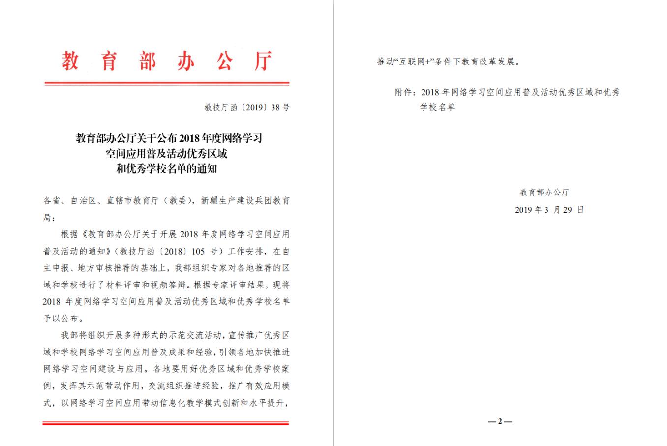 近日,教育部办公厅公布2018年度网络学习空间应用普及活动优秀学校名单,我院顺利通过评审与答辩,被评为教育部“2018年度网络学习空间应用普及活动优秀学校”。