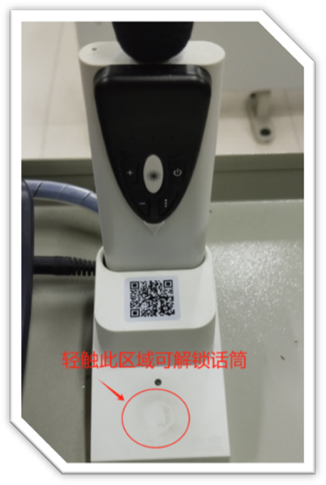 轻触话筒充电底座圆圈“○”标识约三秒,电控锁会自动打开,解锁后开启话筒电源开关即可使用无线话筒(此时会有使用无线话筒的语音提示)。