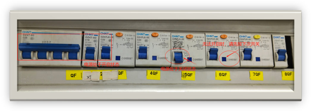 检查教室空开处于开启状态(向上开启,向下关闭)。