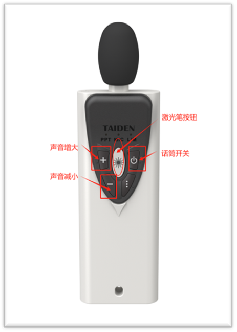通过无线话筒按键“+”“-”调节话筒声音的大小(请勿通过音频处理器的按钮手动调节)。