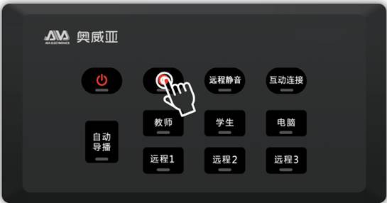 ①遥控器上A区1、2、3、4按键对应LED大屏的显示信号源。B区1、2、3、4按键对应录播系统采集的信号源,两个区域的信号切换方式一样,按下大屏即可输出相应信号源。