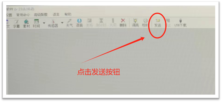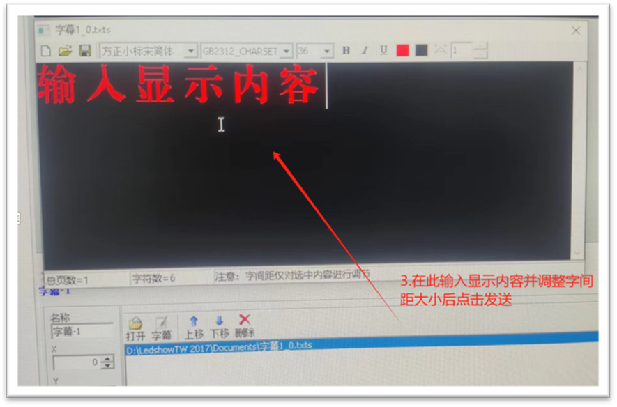 ③输入文字内容、调整文字大小和间距后,点击发送,完成LED会标内容设置。