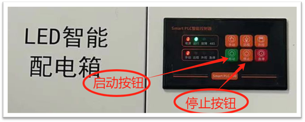 ①进入后面设备间,在配电箱处按下电源“开始”开关。