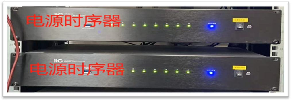 ②在设备架上开启电源时序器设备(2台)开关,详见设备标签和提示。