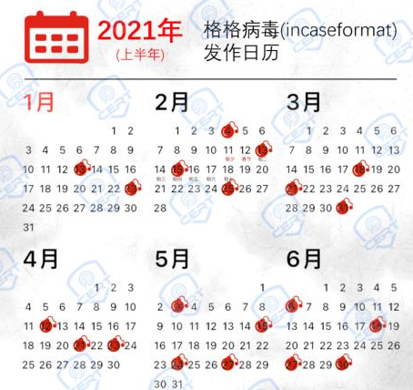 incaseformat 蠕虫病毒发现至今已有10多年历史,一般通过 U 盘进行传播,该蠕虫病毒会遍历删除系统盘以外的文件,并在根目录下创建名为 incaseformat.log 的空文件,由于病毒代码中设置变量值的错误,导致计算当前系统时间出错,所以直到 2021 年 1 月 13 日才被触发。