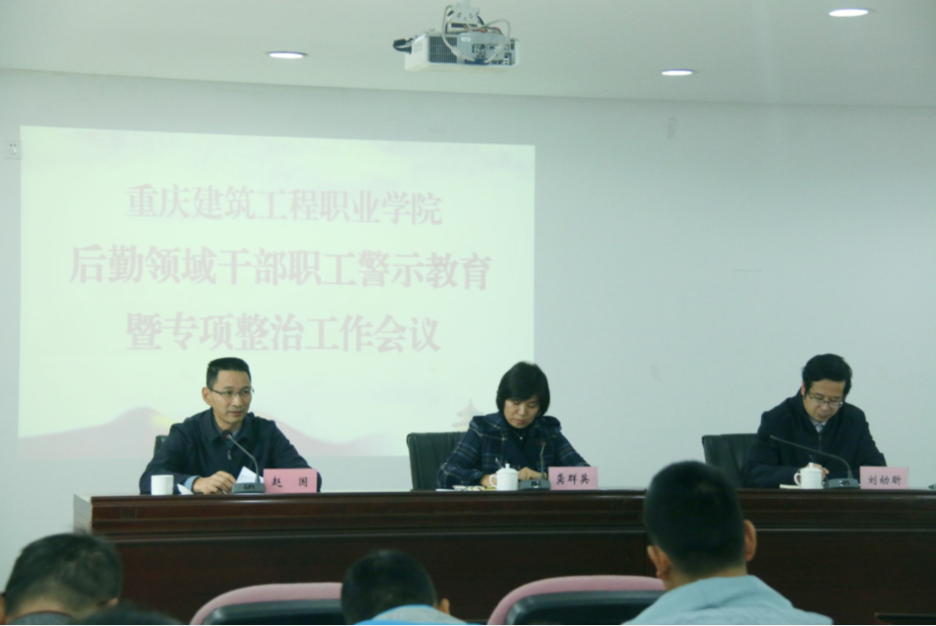 2023年11月21日上午,学校在厚德楼411会议室组织召开后勤领域干部职工警示教育暨专项整治工作推进会议。会议由副校长刘幼昕主持,基建后勤处、财务处、纪检监察室干部职工以及后勤服务单位有关项目管理人员参加会议,党委副书记龚群英,纪委书记、监察专员赵国出席会议并讲话。