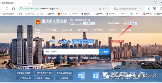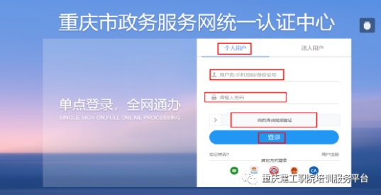 电脑端:打开浏览器输入网址https://zwykb.cq.gov.cn/;或百度搜索“重庆政务服务网”,点击“登录”,然后输入自己的账号、密码并验证后点击登录。