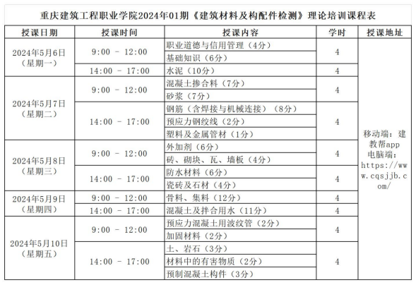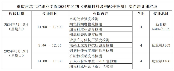根据2024年《重庆市建设工程质量检测人员职业培训考核大纲》,为提高我市建设工程检测人员综合素质和专业技术水平,服务我市检测行业发展,koko体育拟举办2024年01期建筑材料及构配件检测人员职业培训。现将有关事项通知如下: